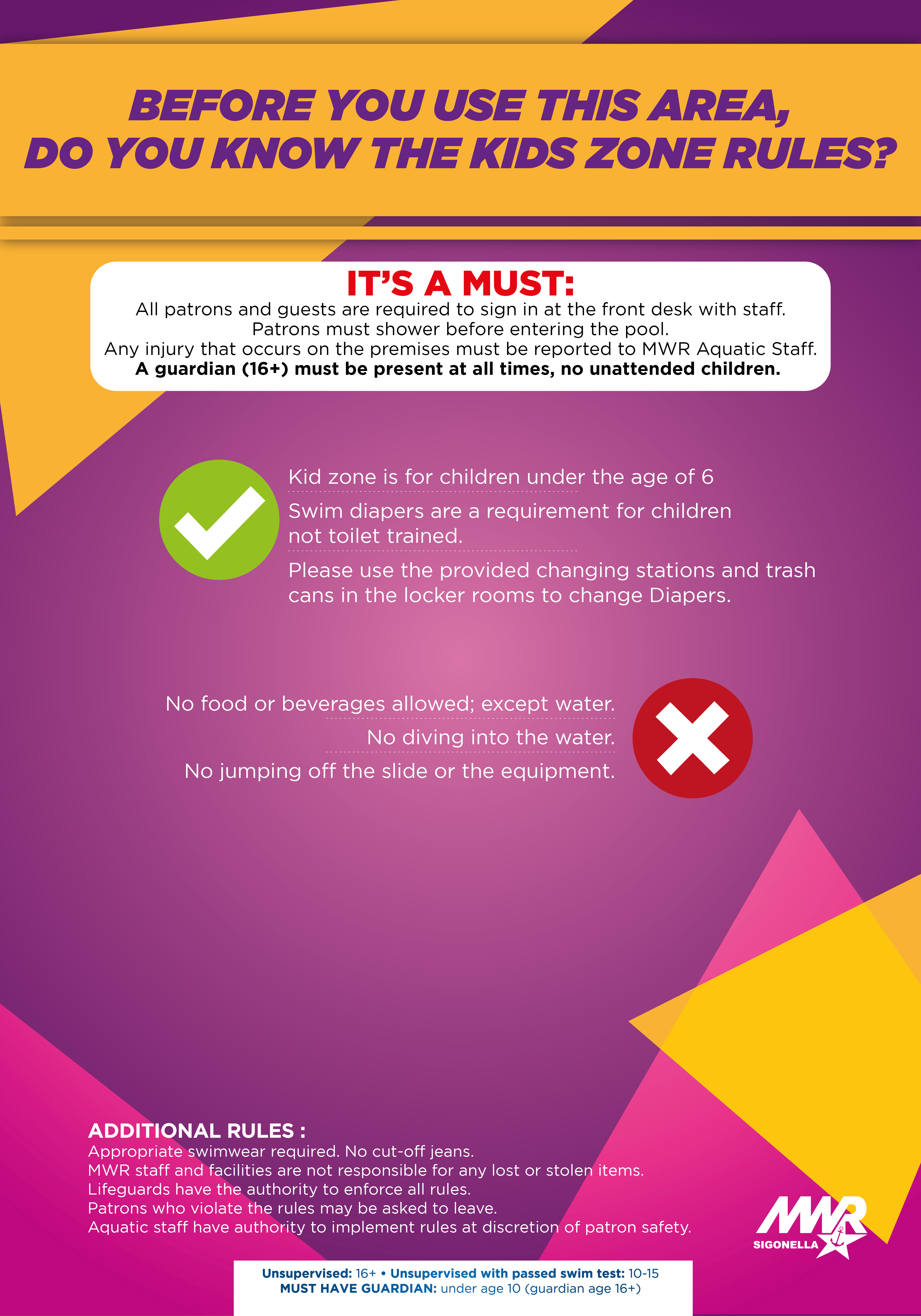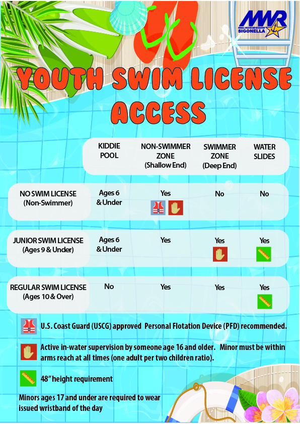 Please note that the NAS II Flight Line Pool is reserved for Ages 18 and older. Please utilize Splashers Pool on NAS I for families during recreation swim season.